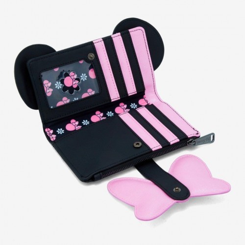Add a Disney touch to your accessories with this wallet! Featuring floral embroidered applique Minnie Mouse ears on the front, the snap closure includes her polka dot bow. With seven card slots, a clear ID sleeve, a bills compartment, and a coin pouch, this wallet is made for trips to the Disney Parks. Don’t forget the matching mini backpack and tote sold separately!