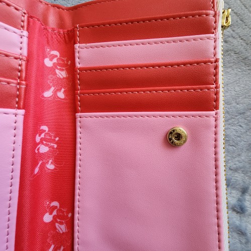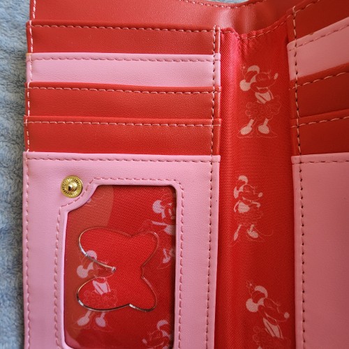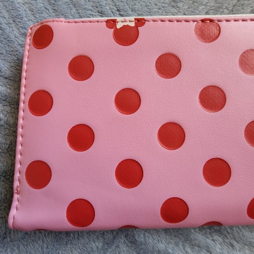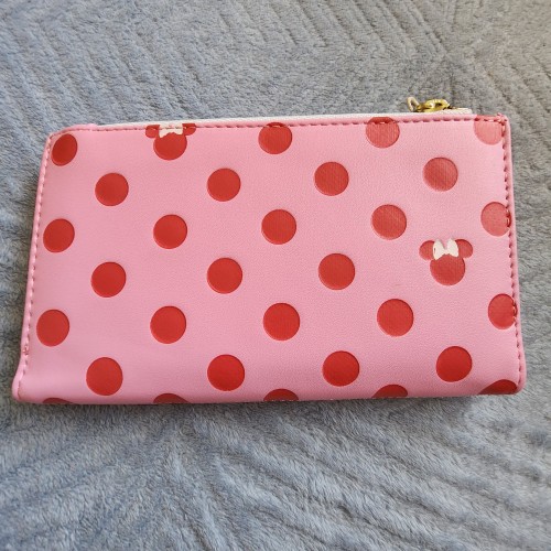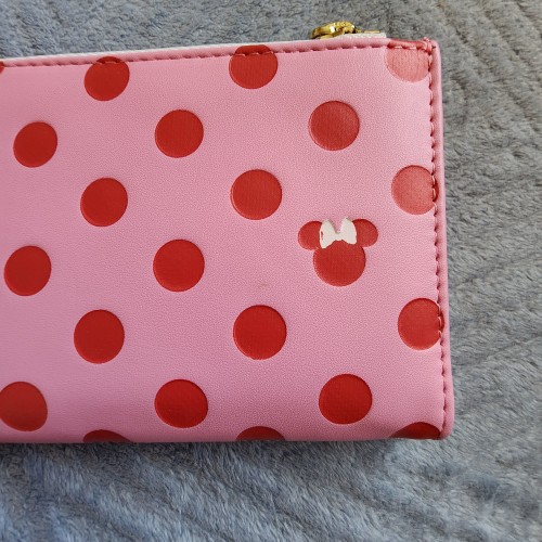 Disney Minnie Mouse Pink Polka Dot Wallet. With a snap closure, this wallet includes card slots, a clear ID sleeve, a bills compartment, and a perfect for your next adventure. Great for everyday use.