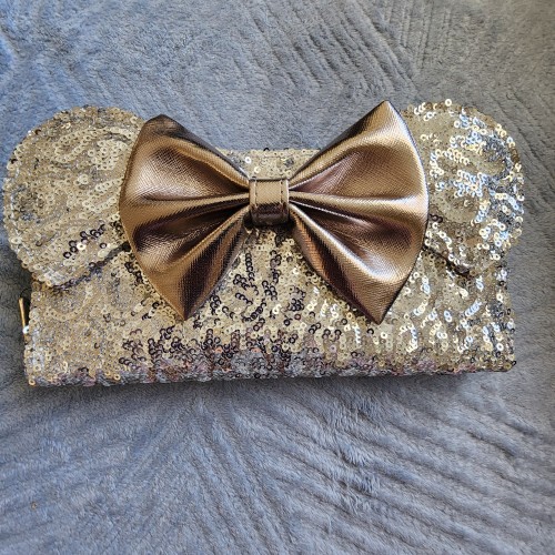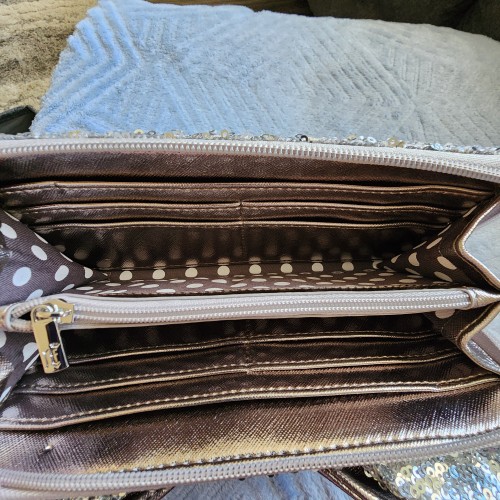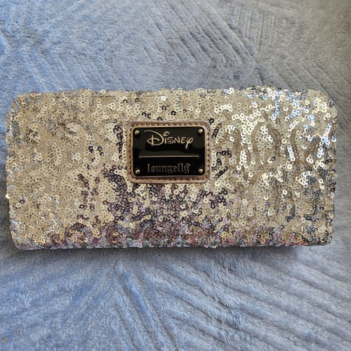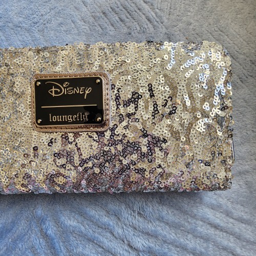 Awesome Loungefly Disney Minnie Mouse Silver Sequined Wallet. It has a zipper a round closure with slots for credit cards and an ID slot. Great for everyday use.