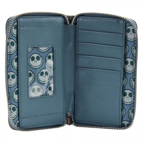 On the front, Jack Skellington and Sally stand on Spiral Hill beneath a full moon. On the back, Jack falls through a spiral of snowflakes. With 4 slots for holding cards and a clear slot for holding ID, this wistfully romantic accessory has plenty of room to store all your tricks and treats.