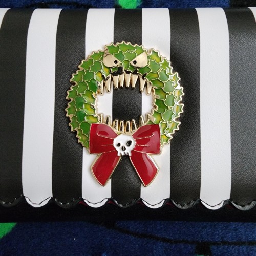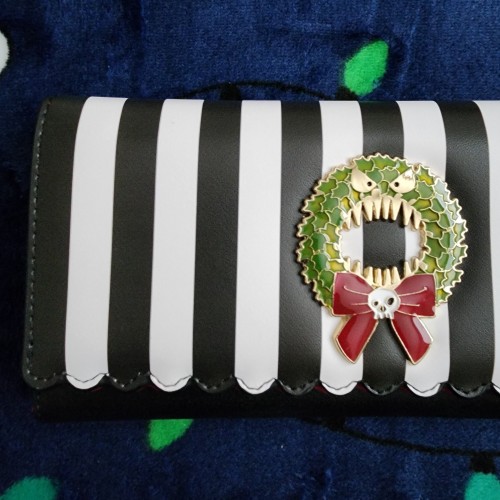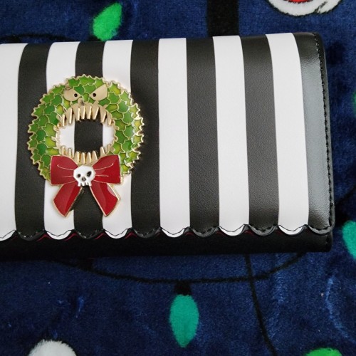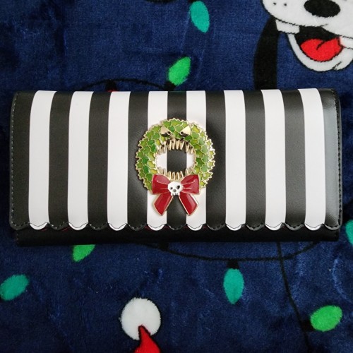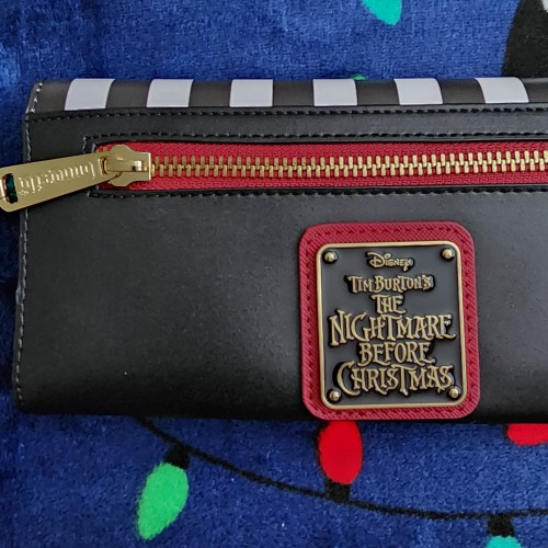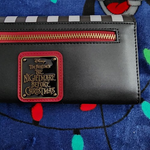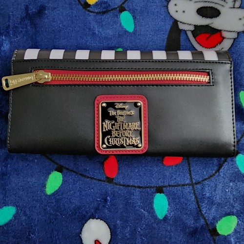 Awesome Loungefly Disney Nightmare Before Christmas Holiday Wallet. It has a snap closure and is a tri-fold, with slots for credit cards and an ID slot. Great for everyday use and perfect for the upcoming holidays.