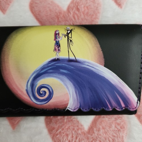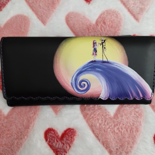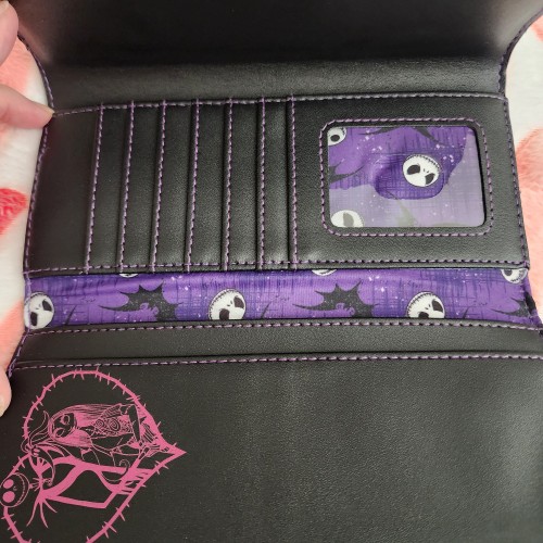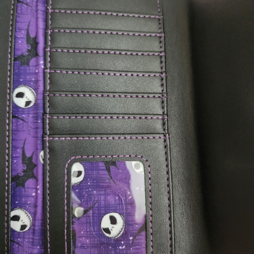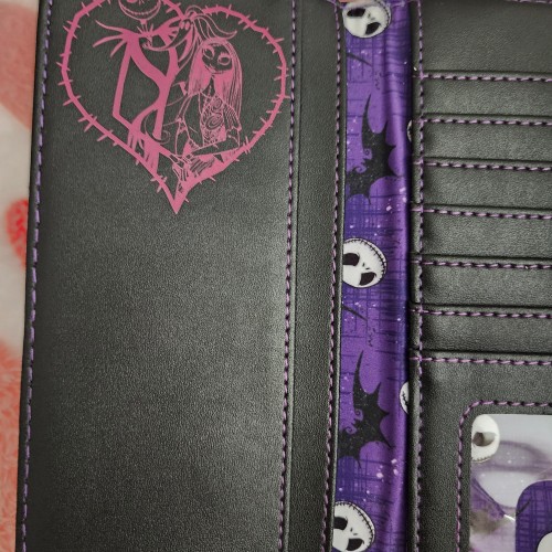 Accessorize with a touch of Halloween spirit year round thanks to this Loungefly wallet! Inspired by Disney’s The Nightmare Before Christmas, Jack Skellington and Sally appear on the front graphic, standing atop Spiral Hill to capture the movie’s iconic scene. Complete with an enamel Zero zipper pull and brand badge and interior graphics and lining of Jack and Sally amongst bats, fans can can carry all of their cards and currency in a scary good style when they add this wallet to their outfits.