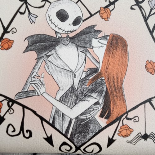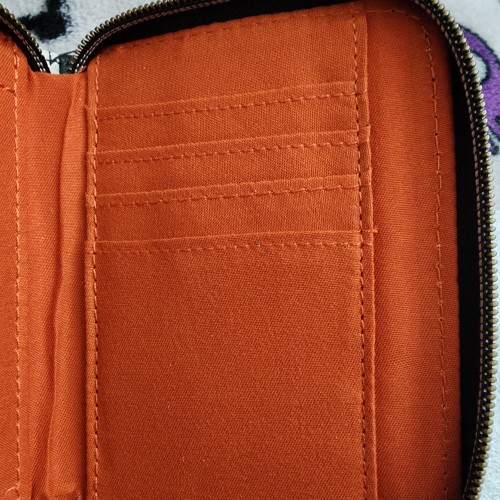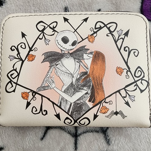 Awesome and Super Cute Loungefly Disney Nightmare Before Christmas Jack and Sally Iron Vine Wallet. This wallet has an all-around zipper closure with slots for credit cards and an ID slot. This is great for everyday use.