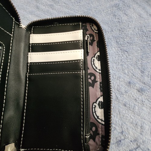 Sparkle, shine, and cause a scream! Take along our exclusive Disney Tim Burton’s The Nightmare Before Christmas Jack Skellington Sequined Zip-Around Wallet. This accessory features Disney’s Jack Skellington in applique, sequined, and embroidered details. His applique arms cross in the front, and white sequins appear on both the front and the back. Look hauntingly stylish wherever you go with this