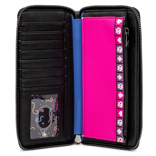 Be careful what you wager. Oogie Boogie is a high stakes gambler and he’s here with his wheel to see if you’ll play a round or two with the Loungefly Disney The Nightmare Before Christmas Oogie Boogie Wheel Zip Around Wallet. Jack Skellington, Sally, and Sandy Claws (Santa) are present as well. The fluorescent details are what make this wallet glow under a black light! This wallet is great for adding an eerie air to a Halloween-themed outfit.