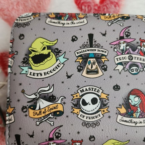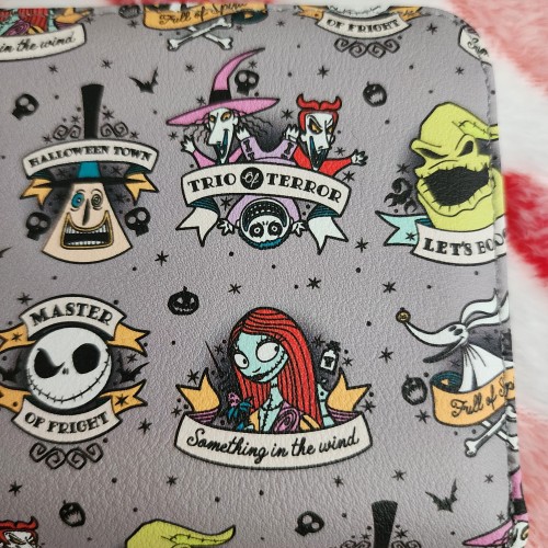 Creep around Halloween Town with your essentials in this mini wallet! From The Nightmare Before Christmas, this zipper wallet features tattoo-inspired artwork of your favorite citizens of Halloween Town like Jack, Sally, Zero and more. Comes with 4 card slots, clear ID slot and zipper closure.