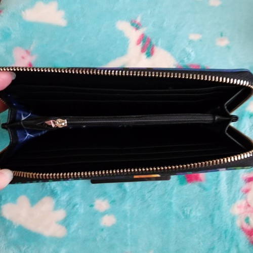 Awesome Loungefly Disney Peter Pan Wallet. It has a all around zipper closure with slots for credit cards and a zipper pocket in the middle for coins and bills. It is great for everyday use.