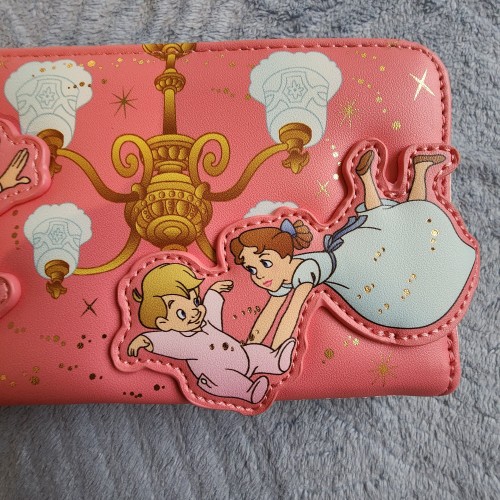Awesome Loungefly Disney Peter Pan Wendy, Michael and John Flying Wallet. It has a zipper closure with slots for credit cards and an ID slot. Great gift for your love one.