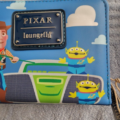 Awesome Loungefly Disney Pixar Toy Story Buzzlightyear and Jessie wallet. It has an all-around zipper closure with slots for credit cards and an ID slot. Great for everyday use.