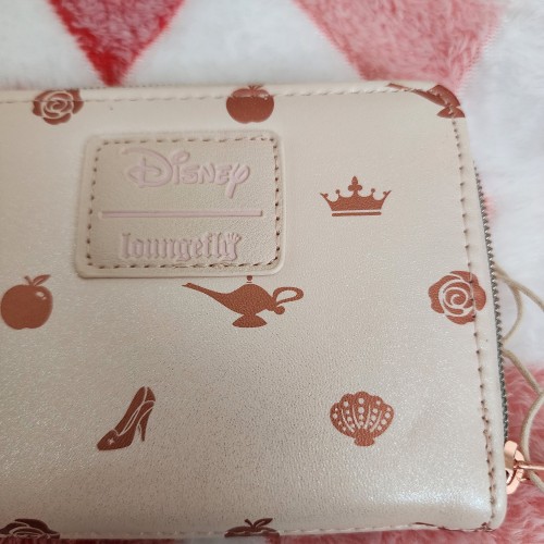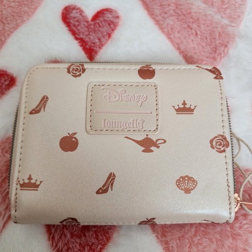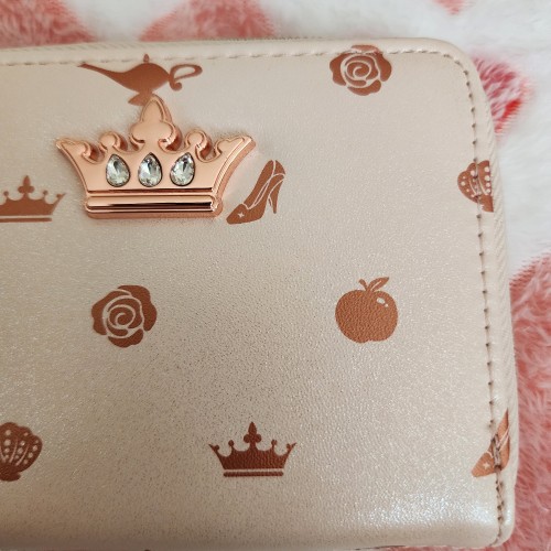 Pack your essentials into a wallet fit for royalty! Rep your favorite Disney princesses with this mini zipper wallet, which has an iridescent sparkle throughout and familiar icons from classic Disney princesses all over. Comes with rose gold-tone hardware and a crown embedded up top, plus 4 card slots and a clear ID slot.