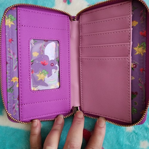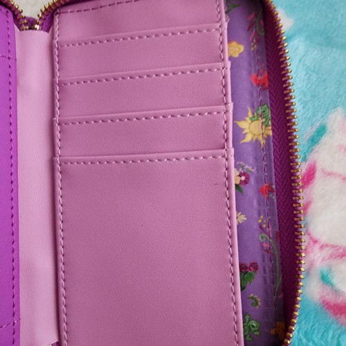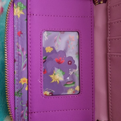 Awesome Loungefly Disney Rapunzel Tangled Wallet. It has a all around zipper closure with slots for credit cards and an ID slot. It is great for everyday use.