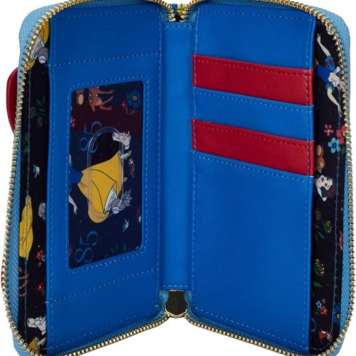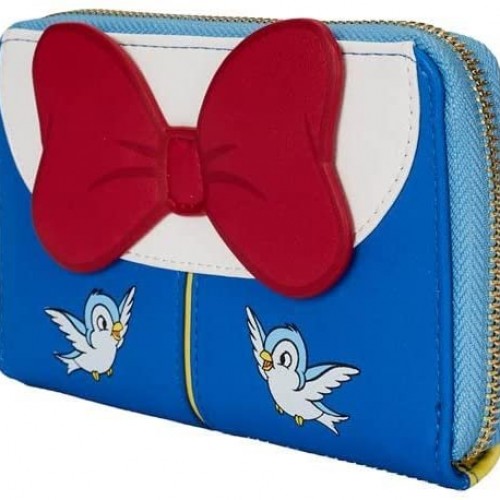 Celebrate the 85th anniversary of Snow White with the Loungefly Disney Snow White Cosplay Bow Zip-Around Wallet! Featuring applique, debossed, embroidered, and printed details on a faux leather base.