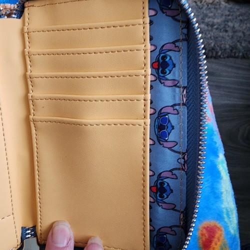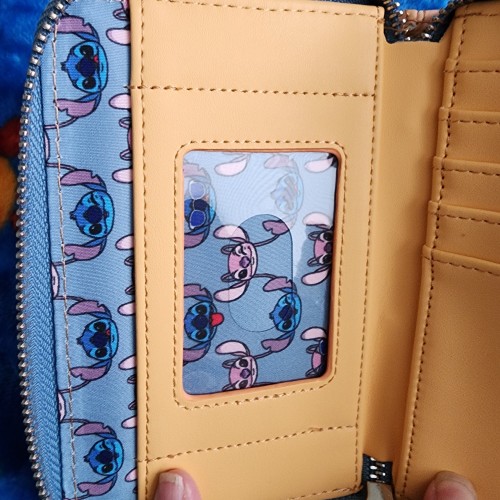 Awesome Loungefly Disney Stitch and Angel Snowcone Wallet. It has an all around zipper closure with slots for credit cards and a ID slot. There is a slot for bills. It great for everyday use.