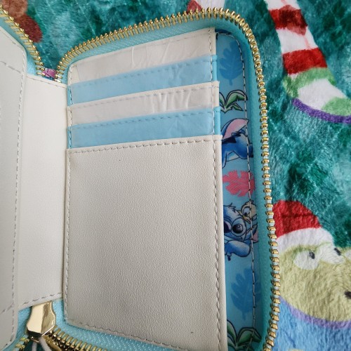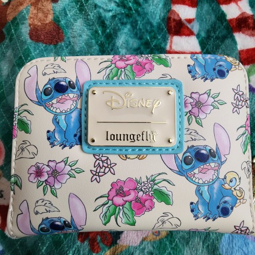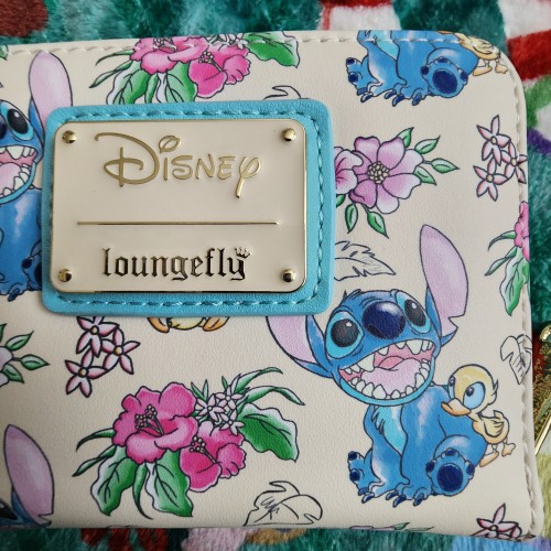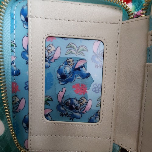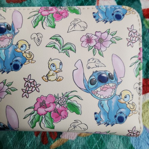 Awesome and Super Cute Loungefly Disney Stitch and Ducklings Wallet. The wallet has an all-around zipper closure with slots for credit cards and an ID slot. This is great for everyday use and makes for a perfect gift.