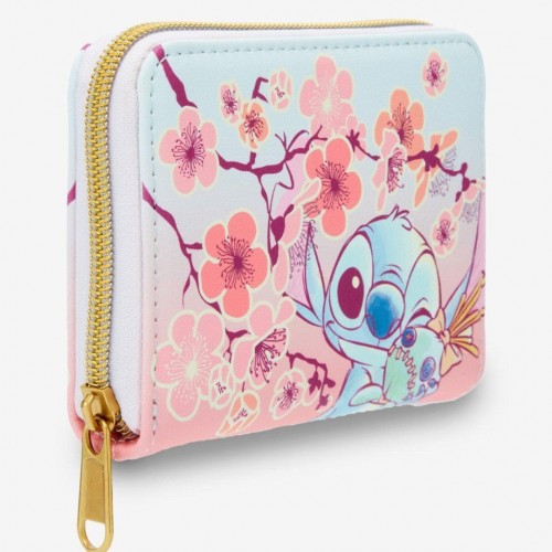Cuteness is in full bloom! This adorable mini zipper wallet features an adorable print of Stitch and Scrump enjoying the cherry blossoms. Comes with 4 card slots, a clear ID slot and a zipper closure.