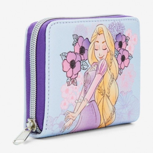 Go chase after your new dream with your essentials packed into this Tangled mini zipper wallet! Features Rapunzel in a watercolor-style print and pastel flowers all over. Comes with 4 card slots and a clear ID slot.