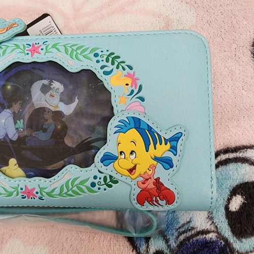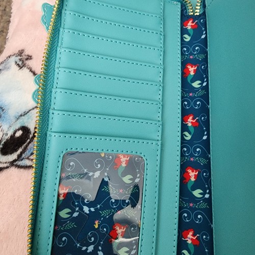 Awesome Loungefly Disney Little Mermaid Holographic Wallet. It has an all-around zipper closure with slots for credit cards and an ID slot. It also comes with a wristlet. Great for everyday use.
