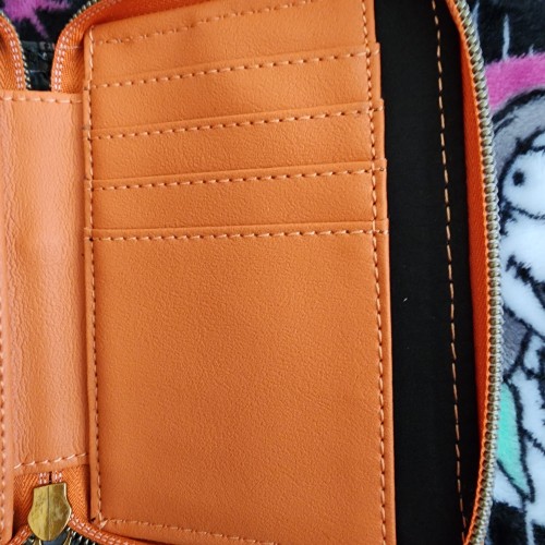 Awesome Loungefly Disney Winnie the Pooh and Friends Halloween Wallet. It has a all around zipper closure with slots for credit cards and a ID slot. Glows in the dark wallet. Great for Halloween.