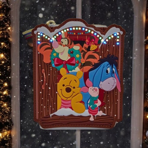 Spend your snow day in style with this Winnie the Pooh wallet! Featuring Tigger, Pooh Bear, Eeyore, and Piglet peeking out of a cabin, the front also includes light-up Christmas lights. With four card slots, a clear ID sleeve, and a zippered pouch inside, this wallet is perfect for your next winter adventure.
