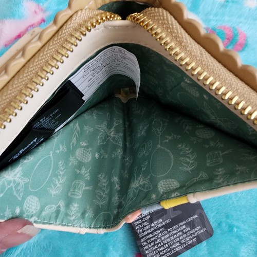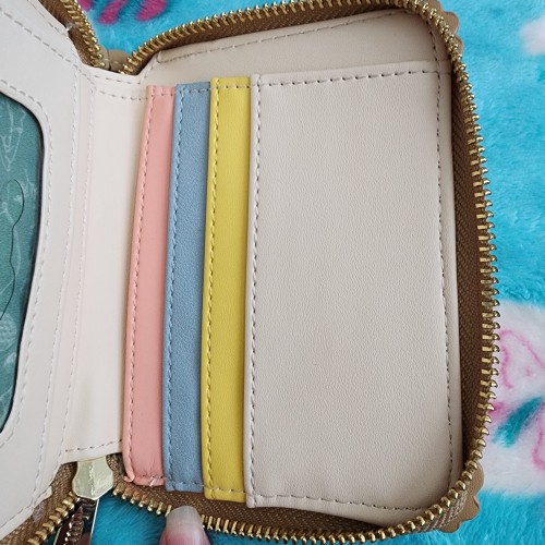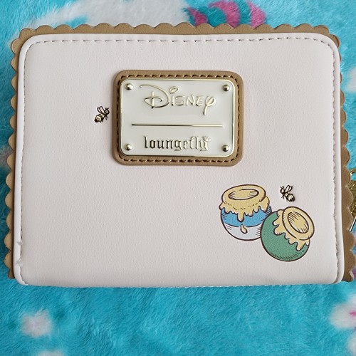 Awesome Loungefly Disney Winnie the Pooh Wallet. It has a snap closure pocket on the front of the wallet. There is an all-around zipper closure in the back with slots for credit cards and an ID slot. It is great for everyday use.