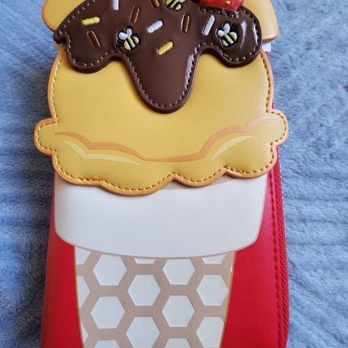 Add a touch of classic Disney to your collection with this wallet! Loungefly Disney Winnie the Pooh Ice Cream Cone Wallet. With slots for credit cards, a clear ID sleeve, and a zippered coin pouch, this wallet is perfect for a Disney Parks visit or everyday use