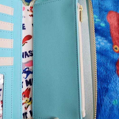 Awesome Loungefly Disney Zootopia Wallet. It has an all around zipper closure with slots for credit cards and a ID slot. There is also a zipper compartment for coins and bills. It great for everyday use.