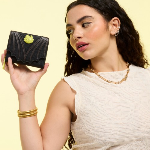 Find faux alligator leather to give a textured feel of a dragon’s hide on this wallet, with a molded metal charm of a dragon and wing details on the front. Inside, you’ll find four card slots and a clear slot for an ID – plenty of space to hold your essentials while you’re out adventuring!