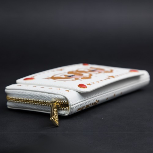 Features: Features gold-colored hardware, and applique, beading, debossed, and printed details.