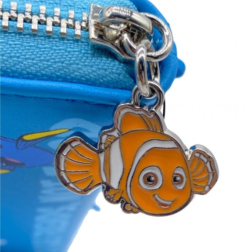 Features: Enamel Nemo zipper charm, 7 card slots, ID slot with clear window, zippered coin/cash pocket, and applique & printed details.