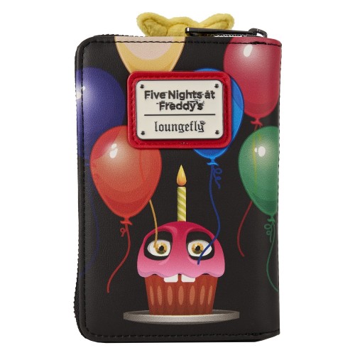 Switch up her expression by moving her eyebrows to make her look more friendly or more sinister. The back of the wallet features an image of Chica’s cupcake surrounded by balloons.