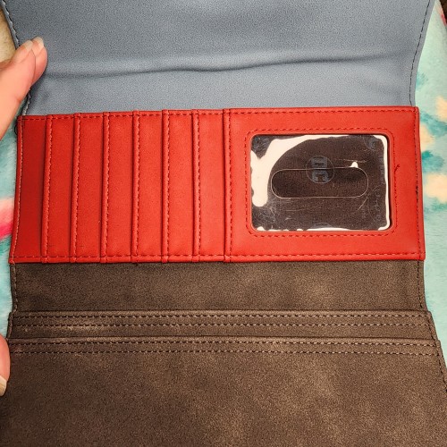 Awesome cool Loungefly Funko Pop DC Justice League snap closure Tri-fold wallet. It has Batman, Superman and Wonder Woman on the front. It has slots for credit cards, ID slot and a large slot for bills. Great for everyday use.