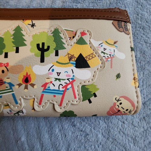 Awesome Loungefly Hello Kitty Cinnamoroll Camping Out Wallet. It has a snap closure with slots for credit cards and an ID slot. Great for everyday use.