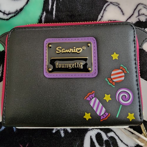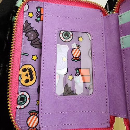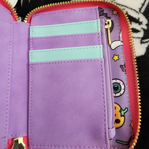 Awesome Loungefly Hello Kitty Cinnamoroll as a Bat Wallet. It has an all-around zipper closure with slots for credit cards and an ID slot. This is great for Halloween or everyday use.