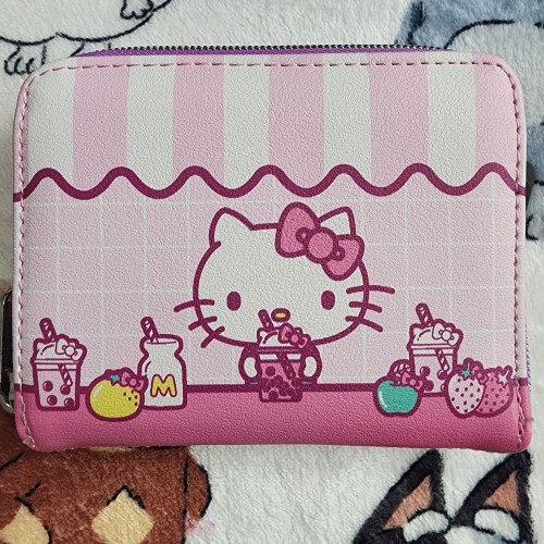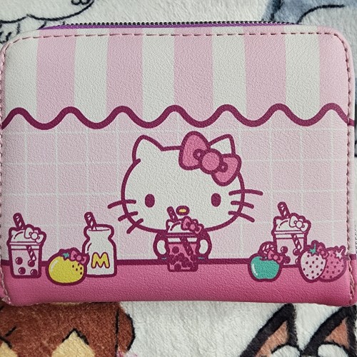 Treat your Sanrio bestie to some sweets! Bring along all your essentials cards in this kawaii mini zipper wallet! Featuring pink and white diner stripes, plus Hello Kitty surrounded by sweet treats. Comes with 5 card slots and a clear ID display