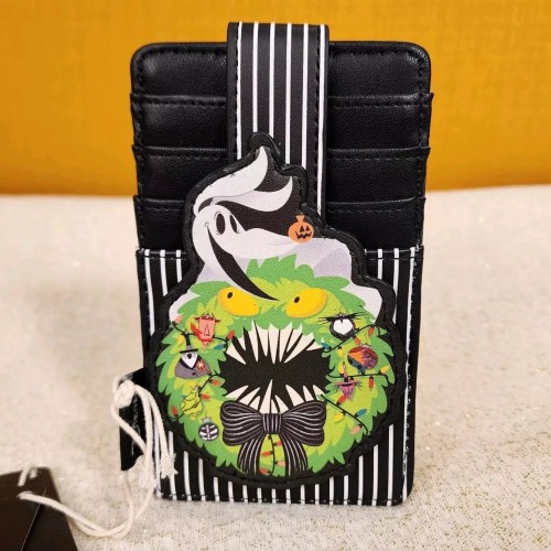 Features: Zippered closure, shiny silver hardware, applique, metallic, debossed, and printed details, four slots for holding cards, and daredevil-shaped die-cut ID window.