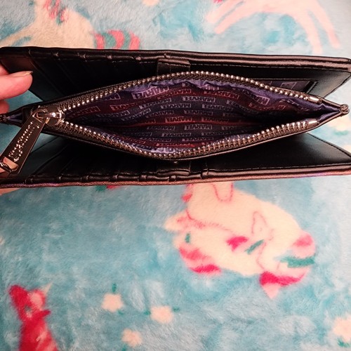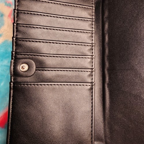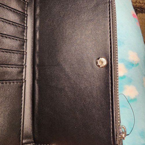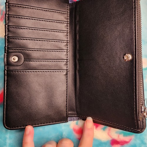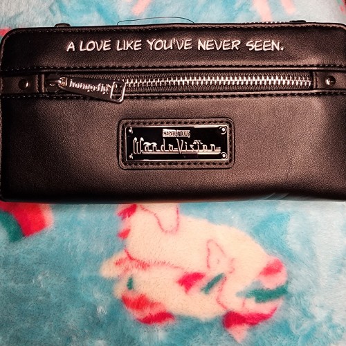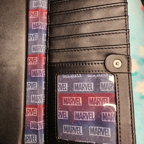 Awesome Loungefly Marvel Wanda Vision Wallet. This wallet is very cool. It has a snap closure that opens up to slots for credit cards, and a zipper pocket for coins and bills. On the other side it has a snap closure with more slots for credit cards and a ID slot. There is also a zipper compartment on the back of the wallet. Great for everyday use.