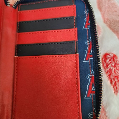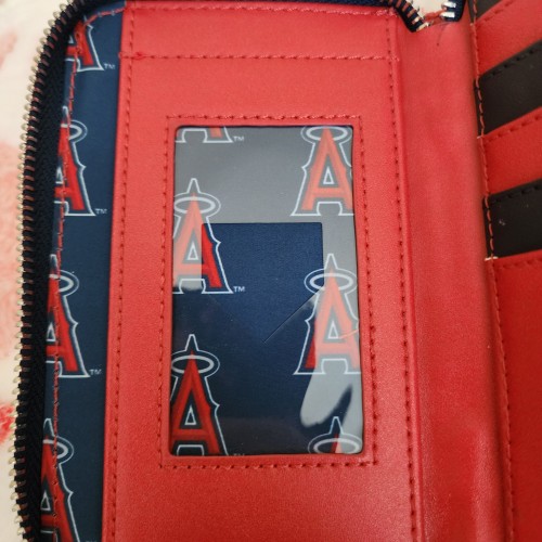 Show your team spirit with an accessory that will knock your Loungefly collection out of the park! The MLB LA Angels Patches Zip Around Wallet is a home run for any Angels fan. This wallet features sporty embroidered patches against a red background. With 4 slots for holding cards and a clear slot to hold your ID, this accessory provides a stylish way to carry your important items as you cheer from the sidelines.