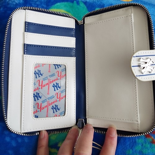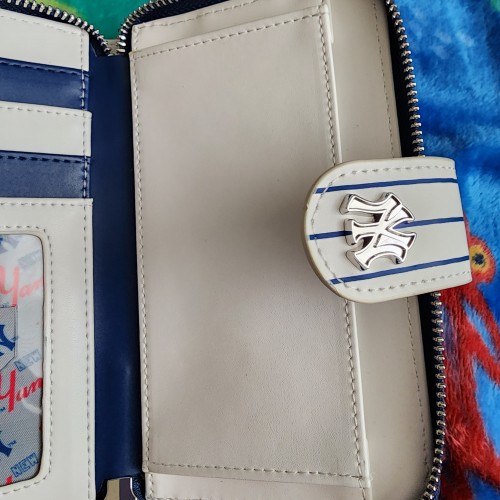 Loungefly MLB New York Yankees Wallet. It has an all around zipper closure with a snap flap on the front. It has slots for credit cards and a ID slot. Great for everyday use. Show your team spirit.