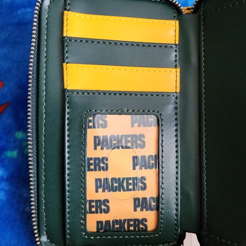 Loungefly NFL Green Bay Packers Wallet. It has an all around zipper closure with a snap flap on the front. It has slots for credit cards and a ID slot. Great for everyday use. Show your team spirit.