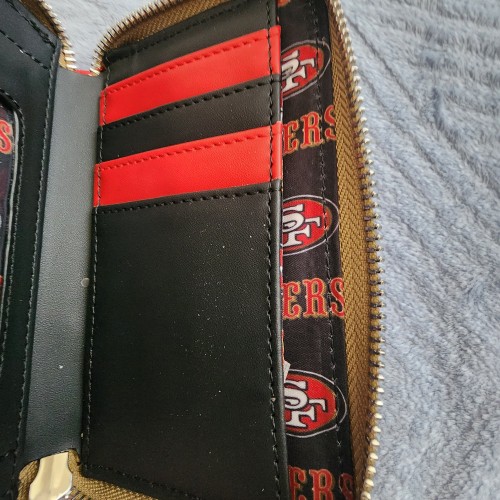 Awesome Loungefly NFL San Francisco 49ers Wallet. If your a big fan get this wallet to show your pride. It has an all around zipper closure with slots for credit cards and a ID slot. Great for everyday use.