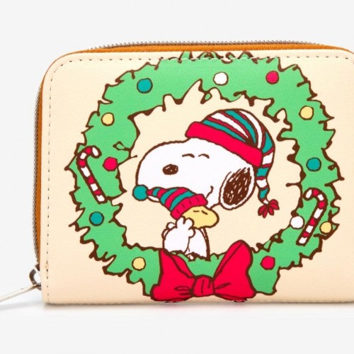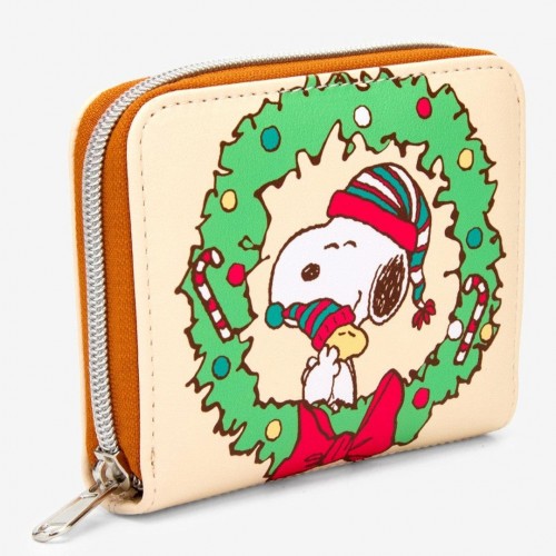 Pack some money to get your holiday essentials (and dog treats for Snoopy) in this Peanuts wallet! It features a festive wreath with Snoopy and Woodstock giving each other a warm hug. Comes with 4 card slots, clear ID slot and zipper closure.