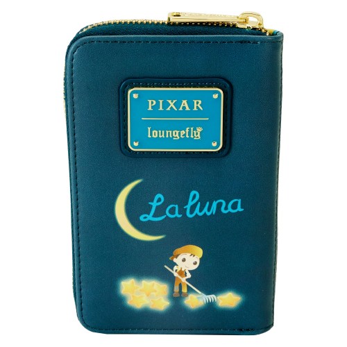 Find your place among the stars with the Loungefly Disney-Pixar La Luna Glow Zip Around Wallet! On the front, a large moon hangs low in a starry sky. Down below, a family of star sweepers anchor their boat as a child climbs a ladder towards the sky. The short film’s title appears on the back, where the young star sweeper appears below. Turn down the lights to see the moon and stars glow on the front and back of the wallet! This accessory has plenty of room to store your belongings and makes an inspiring addition to any outing.