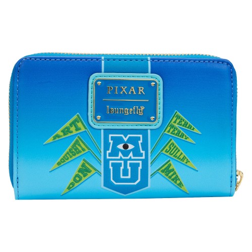 The Loungefly Monster’s University Scare Games Zip Around Wallet is made of vegan leather (polyurethane). Wallet zips closed with sturdy metal hardware. Additional features include applique, debossed, and printed details. Take note of the coordinating inside lining.