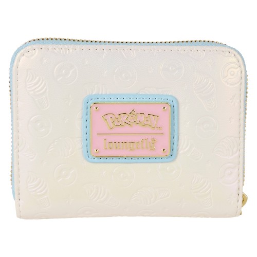 Made with iridescent faux leather, this wallet features Pikachu embroidered front and center. All around are debossed symbols of hearts, Poké Balls, and sweet treats! Inside, you’ll find four card slots and a clear slot for an ID.