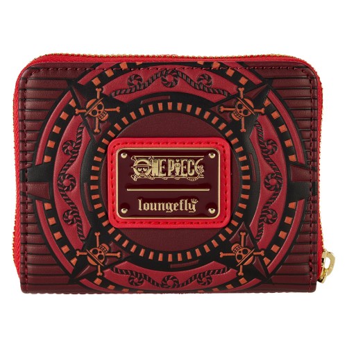 Features: Zippered closure, molded metal charm, four card slots, one clear ID slot with die-cut Jolly Roger cutout, and features applique, debossed, real rope, textured faux leather, and printed details.