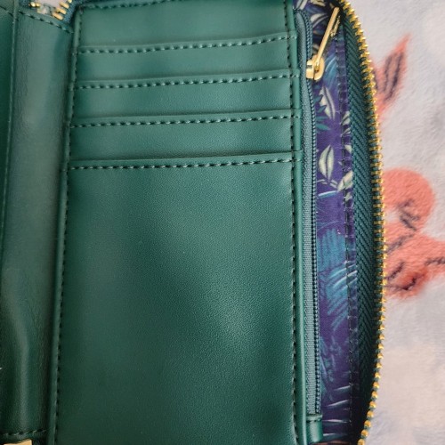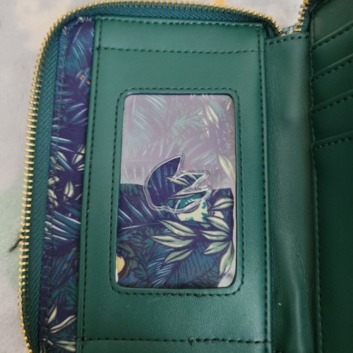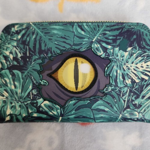 “Clever Girl.” She’s always watching you with this Jurassic World Clever Girl Lenticular Zip-Around Wallet! This wallet features a jungle print with a lenticular eye. The inside features card slots and one clear slot for your ID. This is a faux leather zip-around wallet that features four card slots and one clear slot with a die-cut ID window, crocodile faux leather, an applique, a lenticular feature, a zipper closure and printed details with a coordinating interior lining. This wallet measures approximately 6-inches wide x 4-inches tall.
