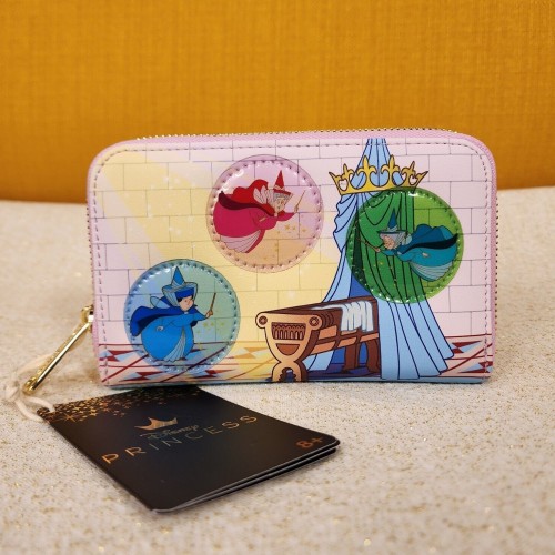 This wallet features applique, debossed, patent faux leather, and printed details.