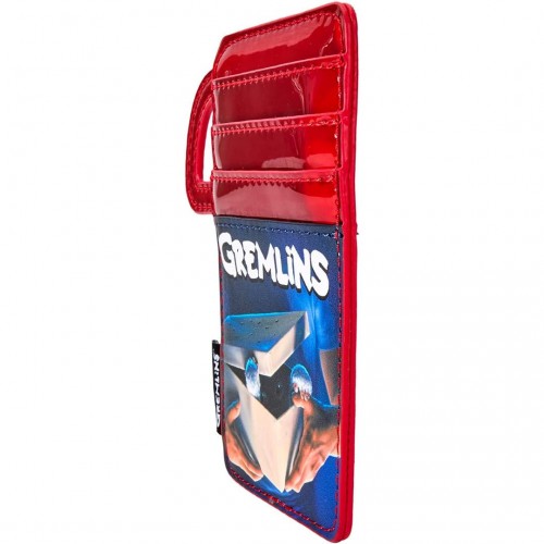 Break all the rules with a fashionably fun flair. Our Gremlins card holder is ready for some fun. This vintage Thermos®-shaped accessory features iconic scenes from the film. Shiny patent faux leather red trim adds a colorful accent. The scene on the front depicts a mysterious box that’s being carried home. Two furry little paws begin to lift the top. On the back, Stripe makes an appearance, wreaking havoc. Celebrate the 40th anniversary of Gremlins. Secure the important cards you’ll need for a mischievously merry adventure.