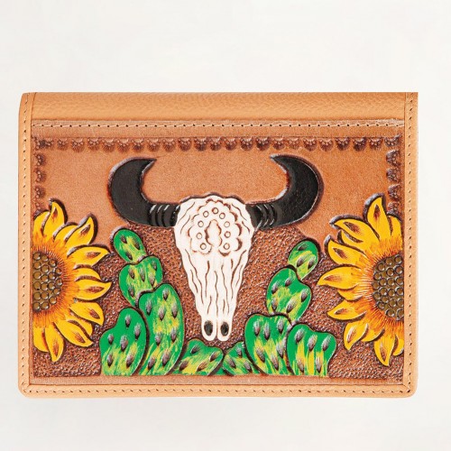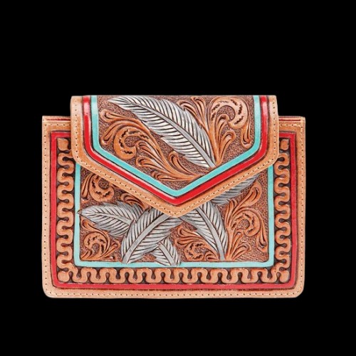 The Copper Canyon Cardholder is a striking blend of functionality and artistry. Crafted entirely with intricate hand-tooling on premium calfskin, it features a colorful design that highlights exceptional craftsmanship. A small flap adds an extra layer of practicality and security, keeping your cards safely in place.