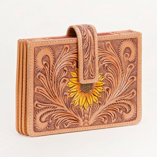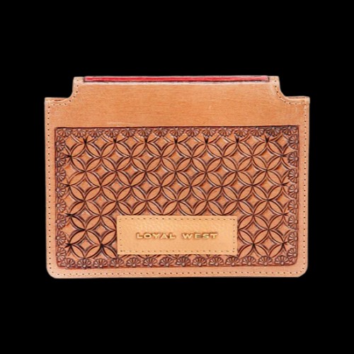 The Copper Canyon Cardholder is a striking blend of functionality and artistry. Crafted entirely with intricate hand-tooling on premium calfskin, it features a colorful design that highlights exceptional craftsmanship. A small flap adds an extra layer of practicality and security, keeping your cards safely in place.